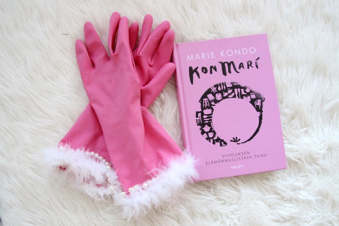 Siivousintoiluuni auttoi myös tämä uusi Kon mari kirja! Kirjasta sai hyviä vinkkejä tavaroiden säilyttämiseen ja suurin ehto kirjassa olikin se, että kaikki mikä ei tuota iloa, heitetään pois. Kaikkea en kuitienkaan ihan allekirjoita tästä kirjasta, kirjoittaja tuntui olevan ehkä vähän liiankin innostunut järjestelemään tavaroitaan hahah! Toivon mukaan meillä olisi nyt ainakin kaikki turha heitetty pois ja kaikille tavaroille löytyy omat paikkansa.